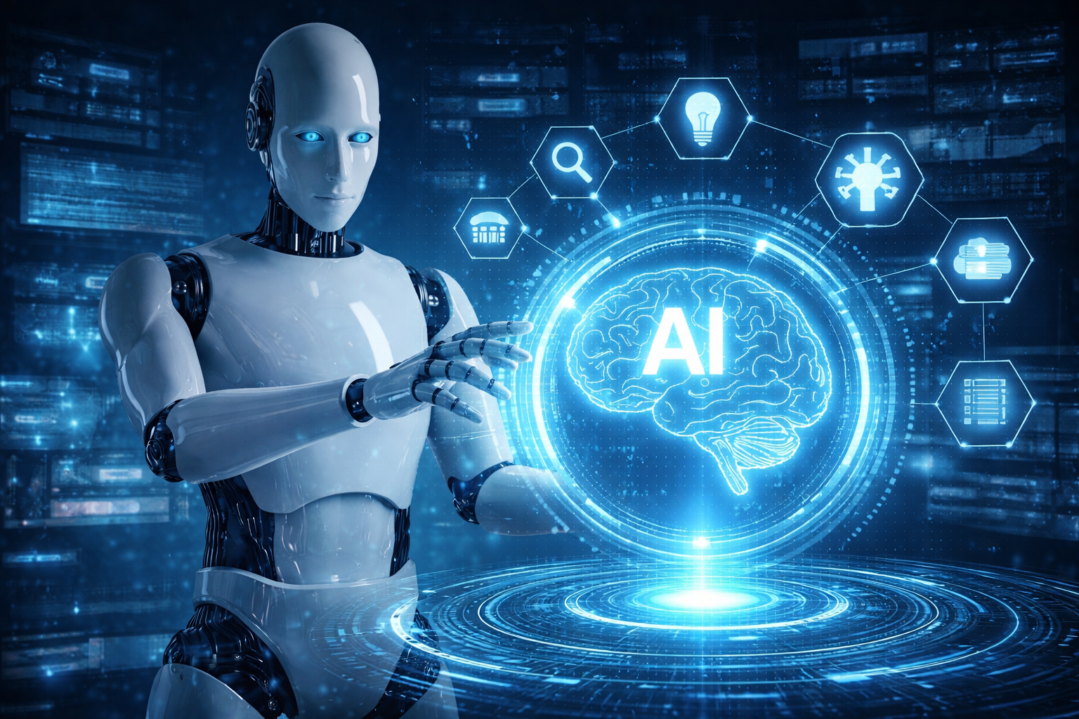 Humanoid robots symbolize the fusion of human intelligence and machine precision. Their clean, minimal design represents efficiency, logic, and adaptability—key traits of AI-driven systems.
